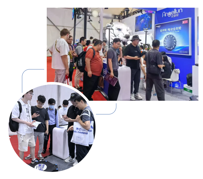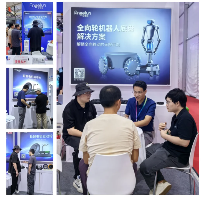 展会期间,安捷轮的展位始终是人气焦点。让路过的从业者忍不住驻足 —— 其中不乏多家头部人形机器人团队,他们正为 “ AGV 机器人拐角卡壳”、“仓库机器人转向迟缓” 等问题头疼。